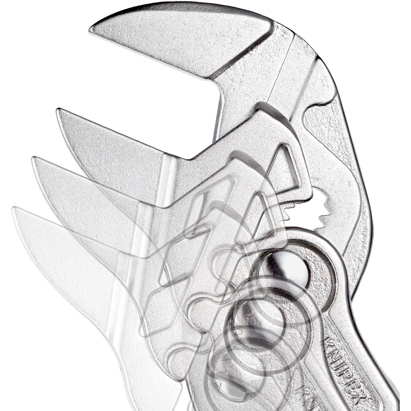 Zmodyfikowane szczypce-klucze KNIPEX posiadają dwie skale grawerowane laserowo: metryczną z przodu i calową z tyłu. Umożliwia to wcześniejsze ustawienie szerokości uchwytu w przypadku trudno dostępnych elementów obrabianych.