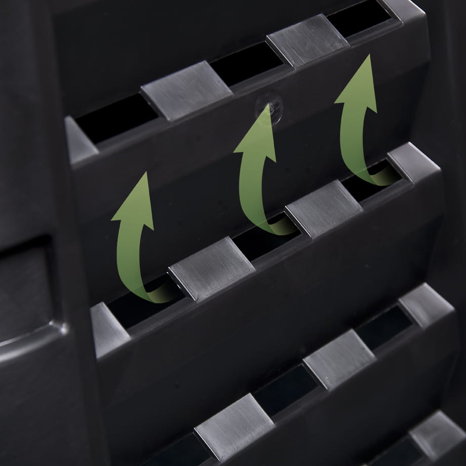 Całoroczny kompostownik zapewnia możliwość samodzielnego przygotowania wartościowego nawozu oraz utrzymania przestrzenie naturalnej w czystości bez zbędnych kosztów. Używając kompostownika oszczędza się na nawozach oraz na kosztach za wywóz odpadów przetwarzalnych. Najważniejsze cechy to: system nawodnienia kropelkowego, miejsce na kłódkę, solidne boczne zatrzaski, nawodnienie i wentylacja, wzmocnione zawiasy klapy, wygodny uchwyt, duże zasuwy z wygodnym uchwytem możliwość montażu kotew mocujących, łatwy w montażu.
