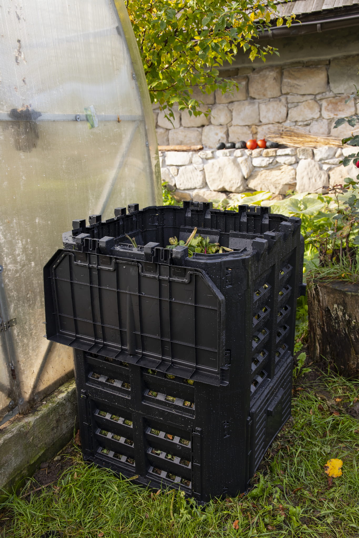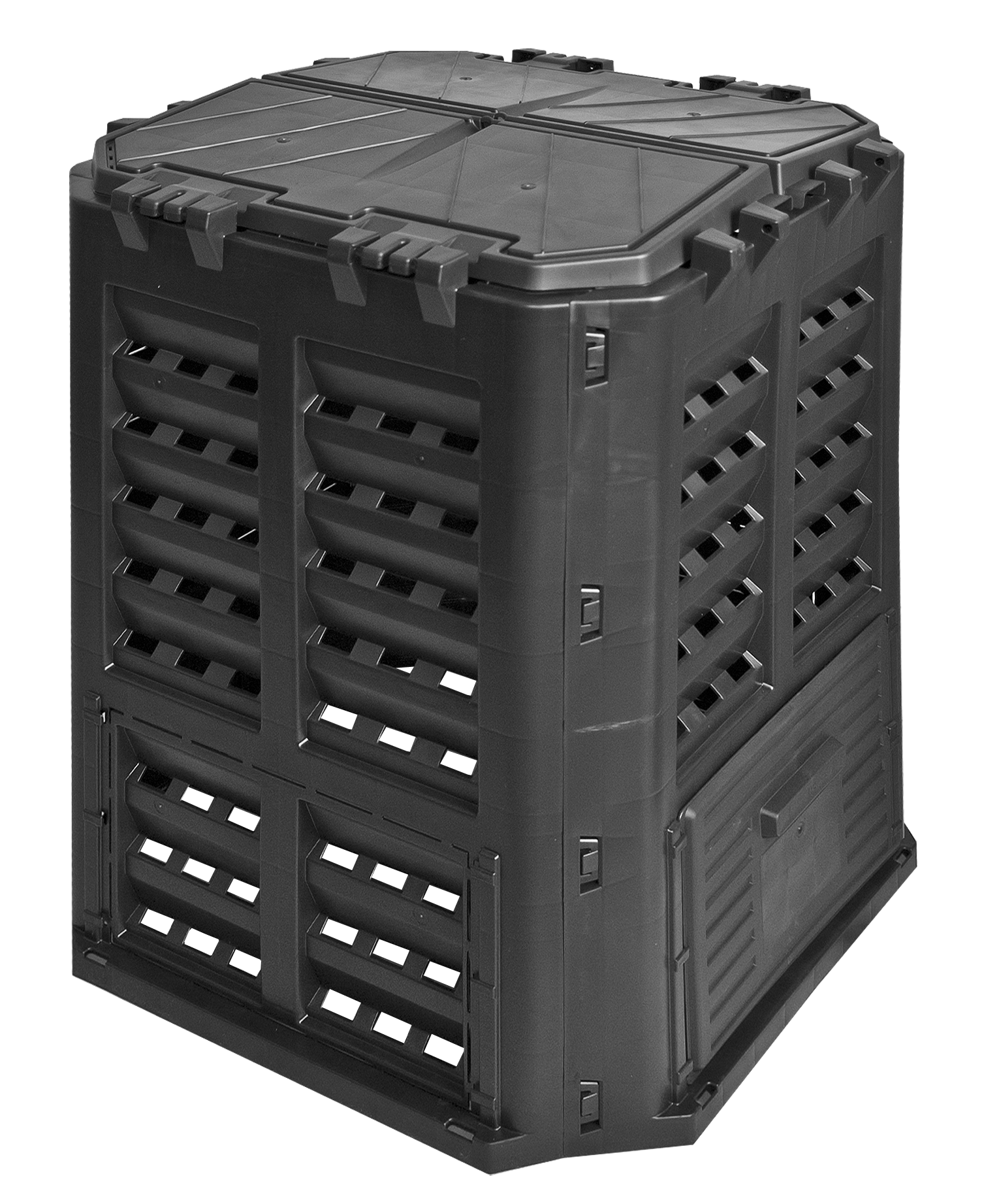 Całoroczny kompostownik zapewnia możliwość samodzielnego przygotowania wartościowego nawozu oraz utrzymania przestrzenie naturalnej w czystości bez zbędnych kosztów. Używając kompostownika oszczędza się na nawozach oraz na kosztach za wywóz odpadów przetwarzalnych. Najważniejsze cechy to: system nawodnienia kropelkowego, miejsce na kłódkę, solidne boczne zatrzaski, nawodnienie i wentylacja, wzmocnione zawiasy klapy, wygodny uchwyt, duże zasuwy z wygodnym uchwytem możliwość montażu kotew mocujących, łatwy w montażu.
