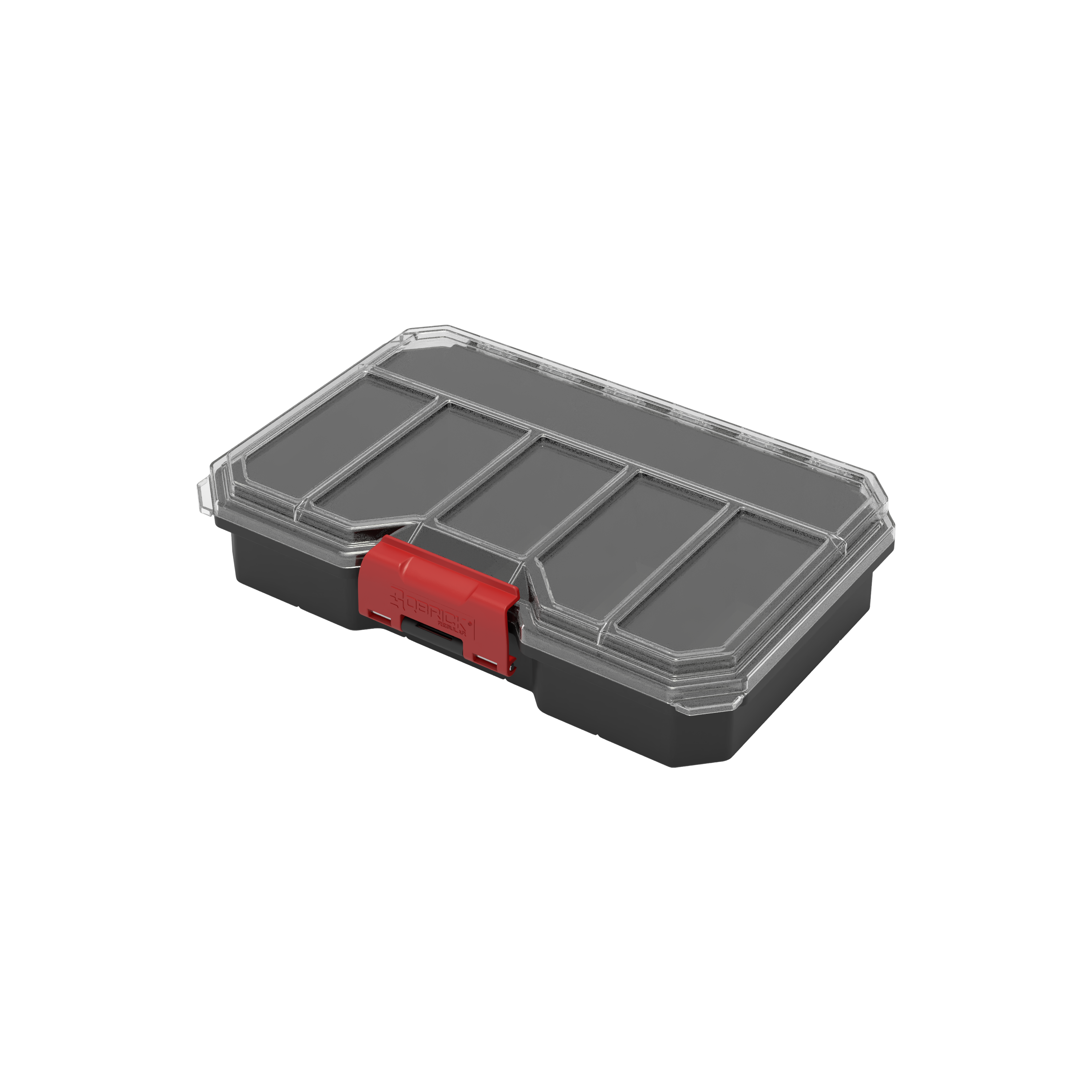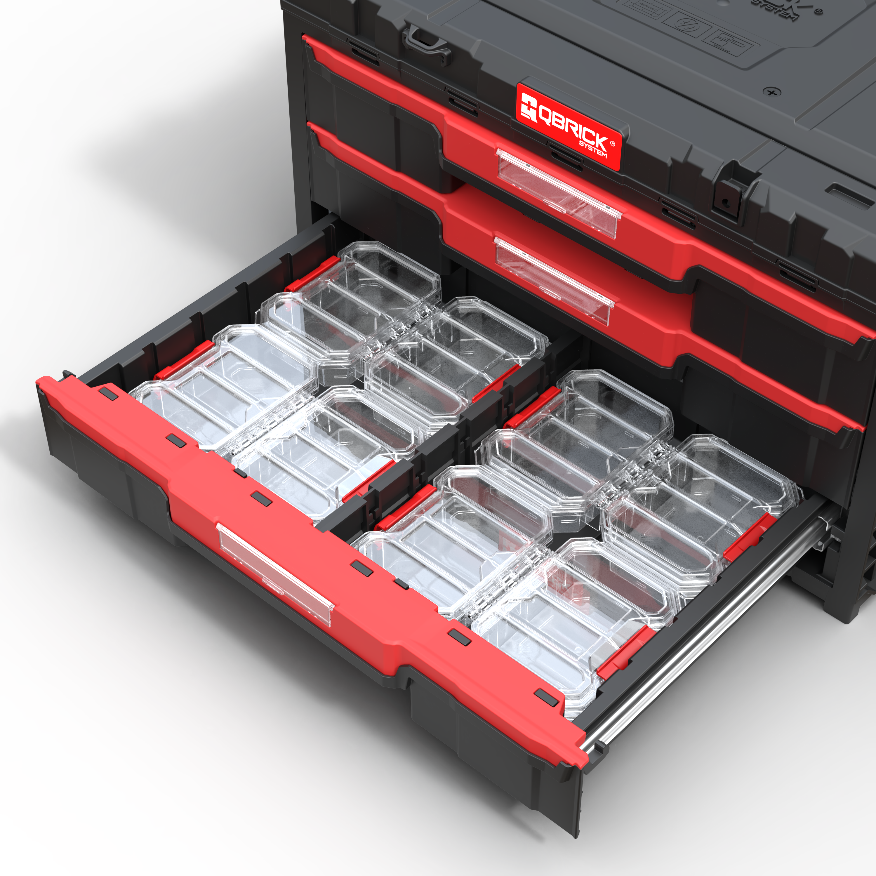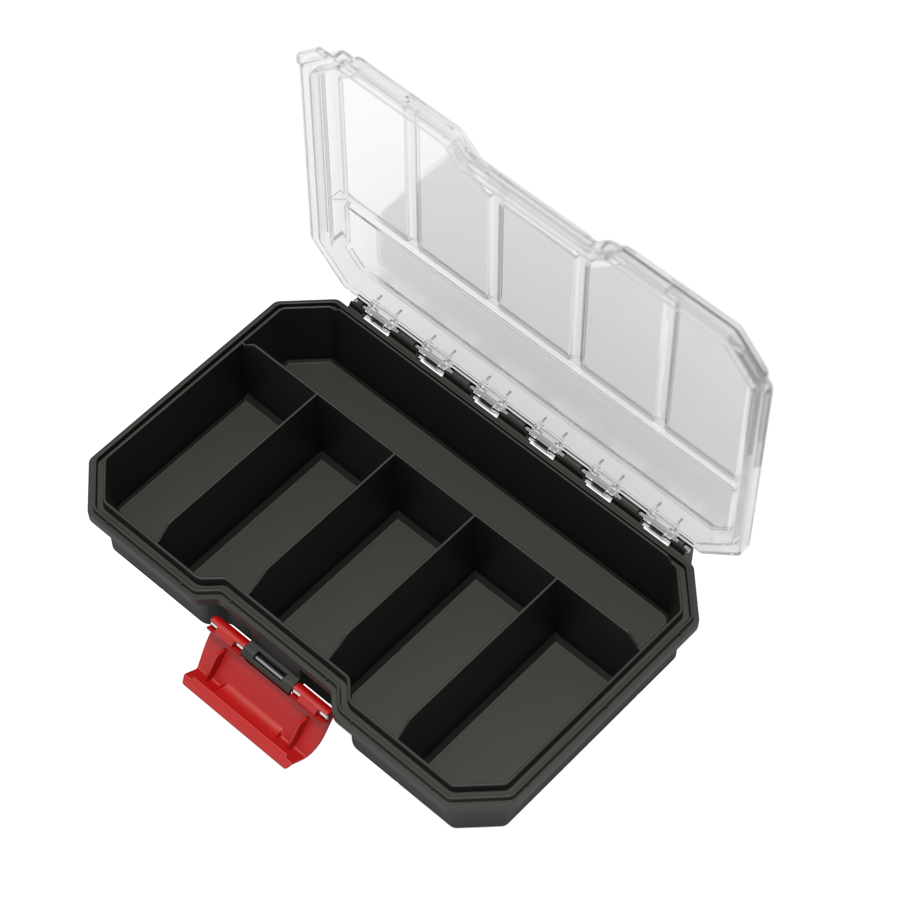 Organizer został wyposażony w transparentne wieko, które umożliwia szybki podgląd zawartości bez otwierania. To rozwiązanie pozwala zaoszczędzić czas i zwiększa efektywność pracy – szczególnie gdy korzystasz z kilku organizerów naraz.