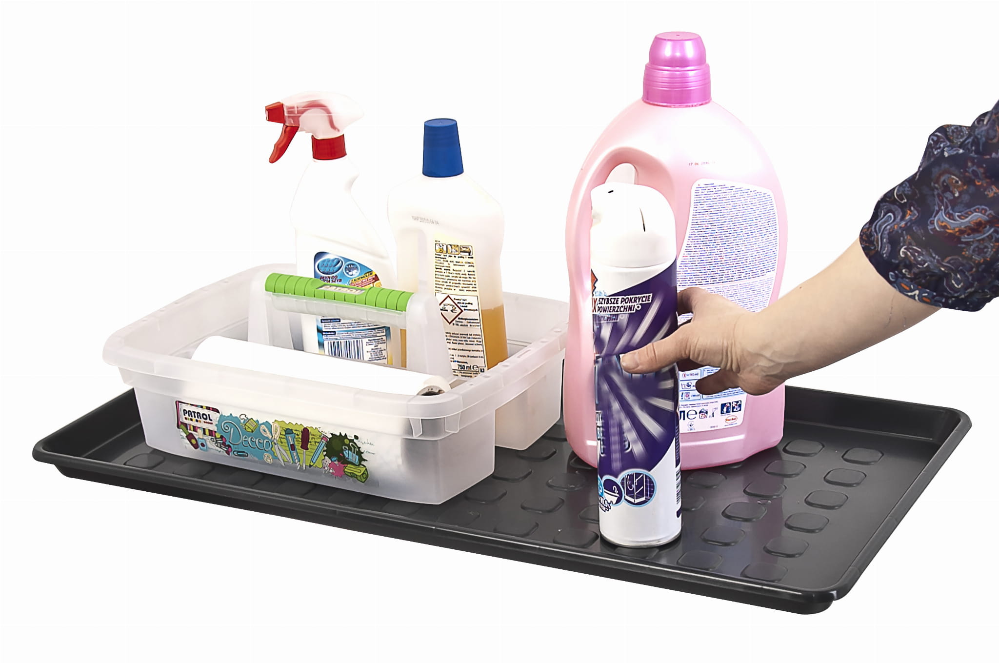 Do użytku wewnątrz i na zewnątrz pomieszczeń: korytarz, pokój dziecięcy, biuro, pracownia, balkon, garaż, warsztat, piwnica, cmentarz, bagażnik i inne. Łatwa w utrzymaniu czystości. Specjalne wypustki na spodzie zapewniają lepszą stabilność oraz zapobiegają ślizganiu się podstawki w bagażniku czy na wykładzinie. Z łatwością pomieści kilka par butów, doniczek z kwiatami, wiaderek farby, worków warzyw, misek z wodą i przekąskami dla zwierzaków. Sztywna i bardzo wytrzymała, wysoka krawędź chroni podłogę przed nadmiarem nagromadzonej wody oraz bezpiecznie pozwala opróżnić nagromadzoną wodę, ziemię, farbę i inne.