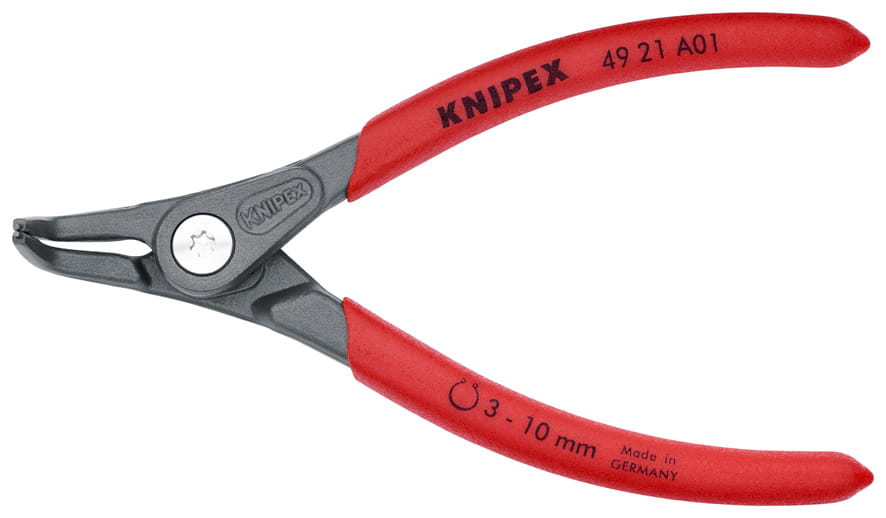 KNIPEX 49 21 A01 to precyzyjne szczypce do pierścieni osadczych zewnętrznych, przeznaczone do montażu pierścieni na wałach o średnicy 3–10 mm. Profesjonalne narzędzie stworzone do intensywnej pracy w serwisach, warsztatach i zakładach przemysłowych.