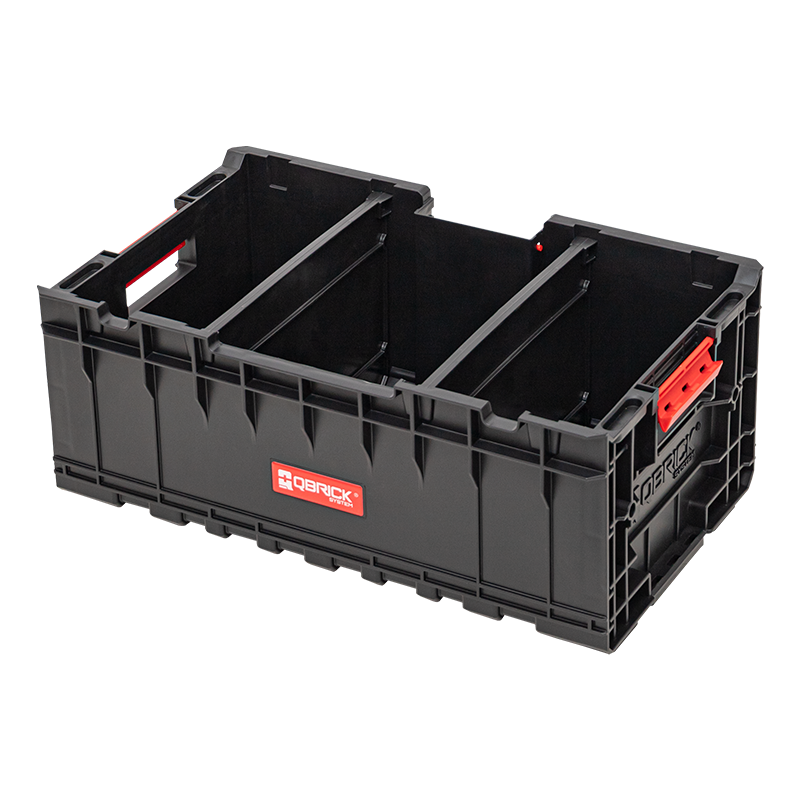Funkcjonalny pojemnik to nieodłączny element zestawów skrzyń Qbrick. Duża pojemność oraz otwarta konstrukcja pozwają na transport przedmiotów o niestandardowych gabarytach lub takich, które wymagają bezpośredniego dostępu bez potrzeby otwierania pokrywy. System łączników umożliwia tworzenie wieloelementowych zestawów z dowolną skrzynią Qbrick System One.